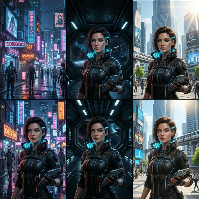 - 身份保留系统 (Identity Preservation System):一个专门的机制,能够“记住”你的角色的核心视觉签名——包括面部骨骼、骨架比例、发线走向甚至服装风格。